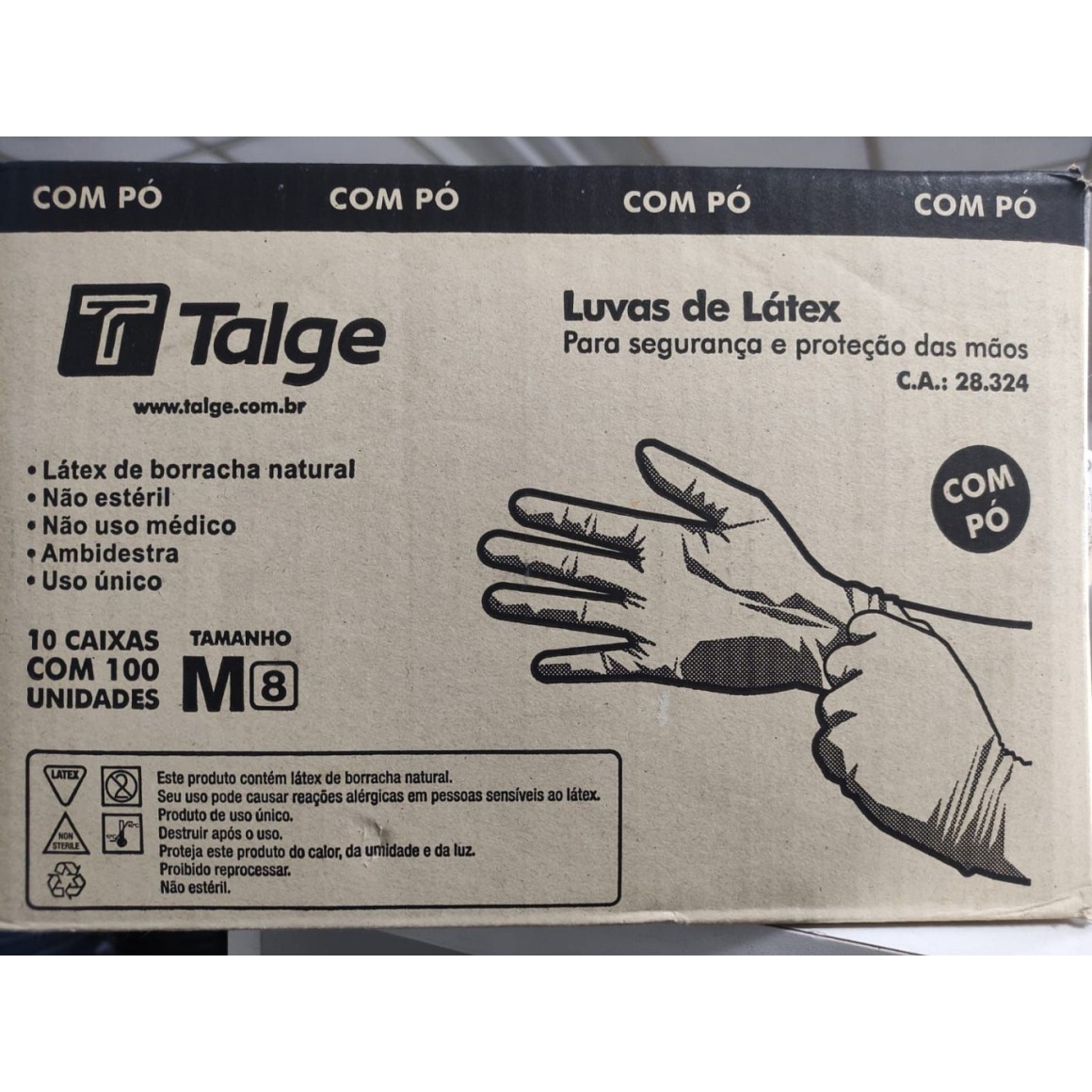 CAIXA LUVA LATEX COM PO TAMANHO (M) BRANCA C/1000 UNIDADES (10X100) TALGE