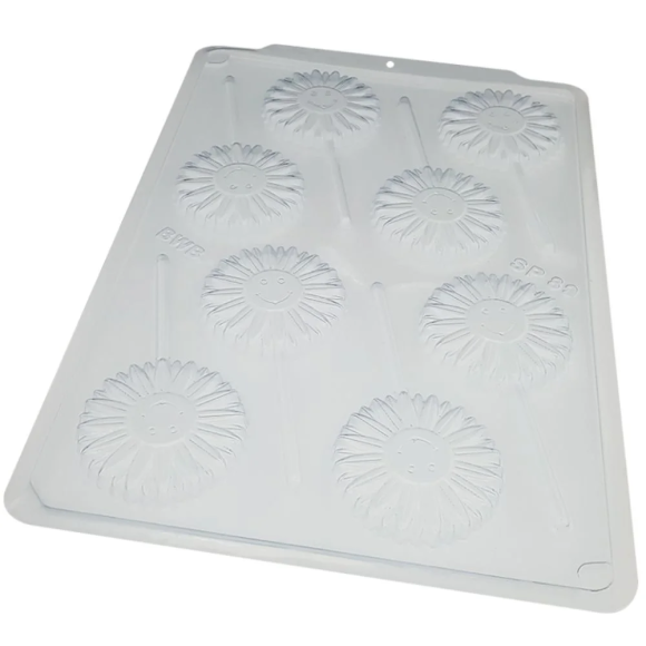 FEITA COM MATERIAL DURÁVEL E RESISTENTE, A FORMA SIMPLES PIRULITO GIRASSOL GARANTE QUE OS PIRULITOS SE SOLTEM FACILMENTE, SEM DANIFICAR O DESIGN. É PERFEITA PARA CRIAR PIRULITOS DE CHOCOLATE, CARAMELOS OU OUTROS DOCES, ADICIONANDO UM TOQUE ESPECIAL ÀS SUAS RECEITAS.