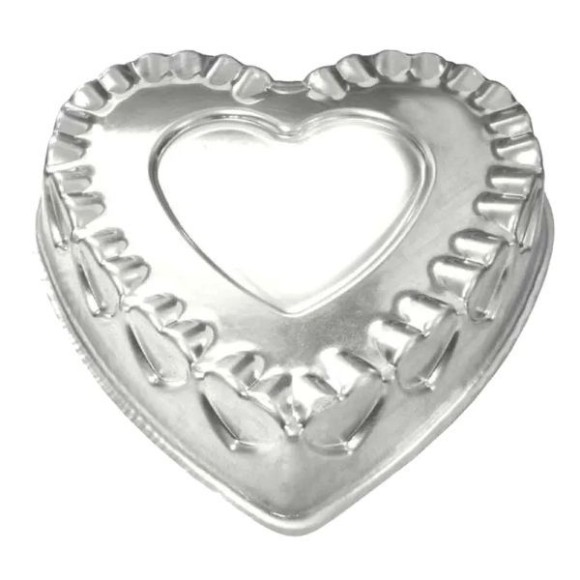 FORMA DE ALUMÍNIO EM FORMATO DE CORAÇÃO DECORADA, IDEAL PARA PREPARO DE BOLOS, TORTAS E RECEITAS ESPECIAIS. COM MEDIDAS DE 33X7 CM, PROPORCIONA UM COZIMENTO UNIFORME E UM RESULTADO VISUAL ENCANTADOR. INDICADA PARA USO DOMÉSTICO OU PROFISSIONAL. ANTES DO PRIMEIRO USO, LAVE COM ÁGUA MORNA E DETERGENTE NEUTRO. UNTE A FORMA COM MANTEIGA E FARINHA OU DESMOLDANTE PARA FACILITAR A RETIRADA DO BOLO.