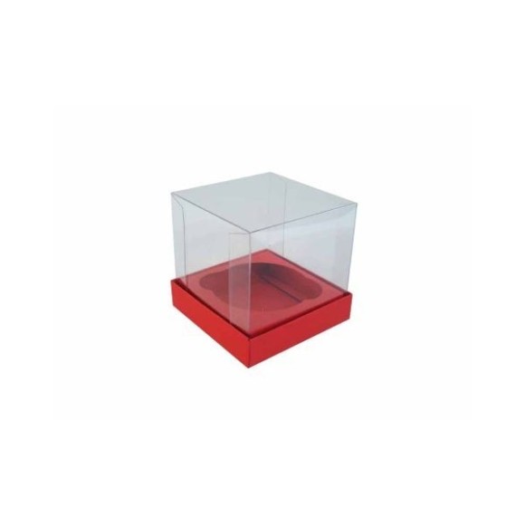 CAIXA PARA 1 CUPCAKE TAMPA TRANSPARENTE COR VERMELHA - UNIDADE