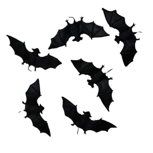 MINI MORCEGO DE BORRACHA DECORATIVO COM 12 UNIDADES, PRODUZIDOS EM BORRACHA FLEXÍVEL E RESISTENTE, COM DETALHES EM ASA, OLHOS E CORPO. IDEAL PARA DECORAÇÃO TEMÁTICA DE HALLOWEEN, FESTAS ASSUSTADORAS, CENÁRIOS ESCOLARES, MESA DE DOCES OU PEÇAS DE ARTE E ARTESANATO. PRODUTO REUTILIZÁVEL, LEVE E FÁCIL DE LIMPAR.