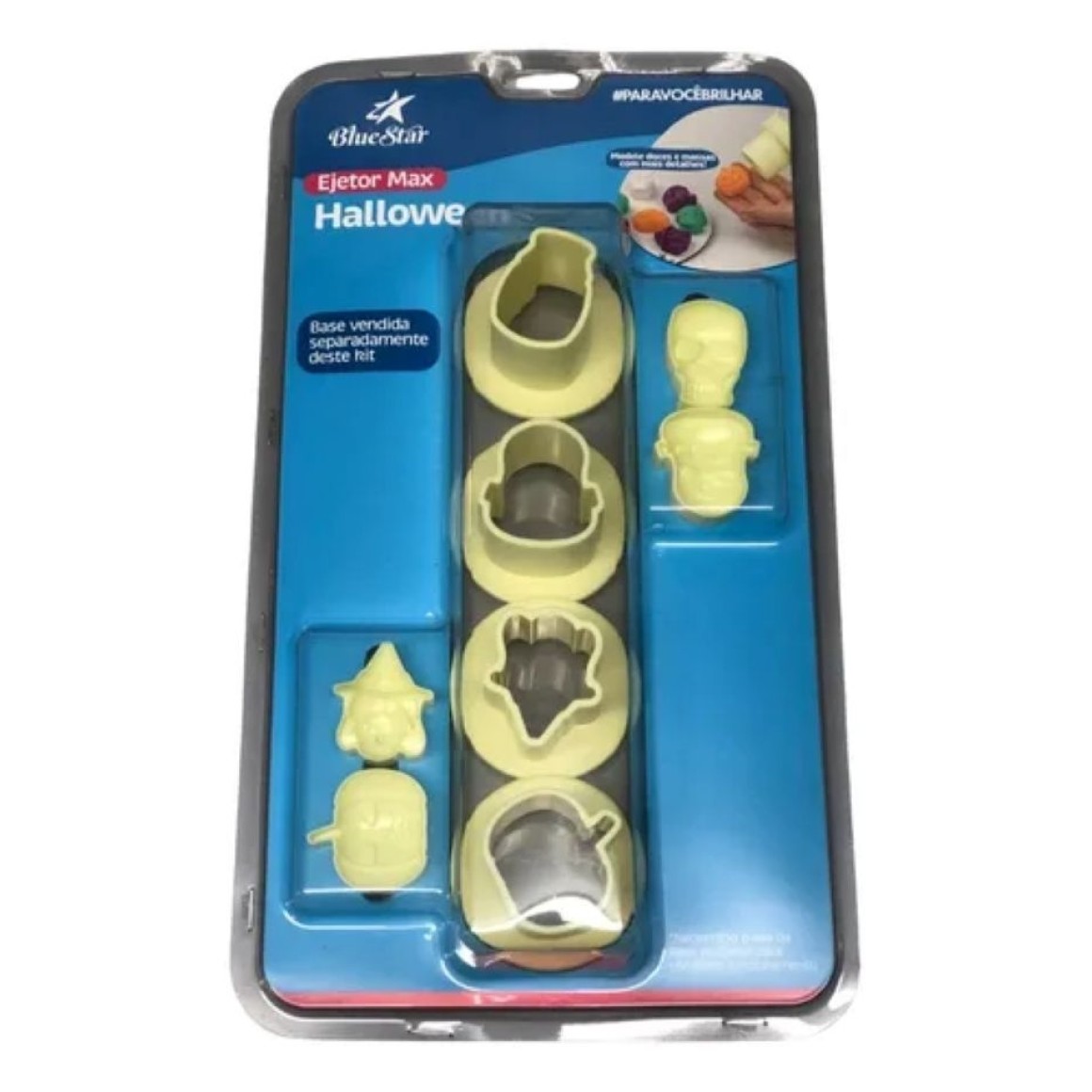 PERFEITO PARA CRIAR APLICAÇÕES TEMÁTICAS DE HALLOWEEN EM PASTA AMERICANA, BISCOITO E BISCUIT, O EJETOR MAX HALLOWEEN BLUE STAR ENTREGA CORTE PRECISO E EJEÇÃO RÁPIDA, GARANTINDO ACABAMENTO LIMPO E PADRONIZADO. PRÁTICO DE USAR: ABRA A MASSA, POSICIONE, PRESSIONE PARA CORTAR E ACIONE O EJETOR PARA DESTACAR A PEÇA SEM DEFORMAR.