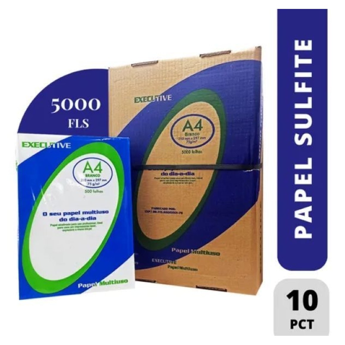 CAIXA PAPEL SULFITE A4 C/ 10 X 500 FOLHAS (TOTAL 5.000) – EXECUTIVE